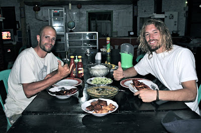 We wake up with the roosters - surf our fill, eat, surf again - eat again. Then it's time for some quiet reading followed by a siesta - followed by another surf. Luckily I'm keeping stingy company so even a nightly Bintang is a special occasion, and usually I'm in bed by 8:30 anyway.