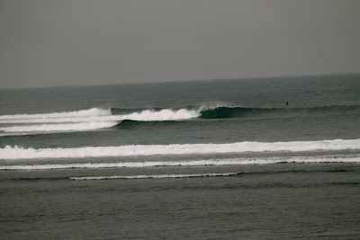 When the swell picked up a little - we ventured south for an exploratory mission. We saw so many crazy set ups and ended up surfing a sketchy shallow a - frame with an audience of noisy monkey in the dunes.