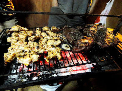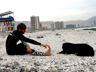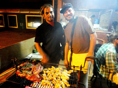 After our epic little camping adventure, we returned to the surf hostel to find smashed windows and holes and blood on the wall! Apparently the night we left a big group of football hooligans from santiago stayed over for a match. All was going sweet until younger members from the same side showed up and attacked the hostel because of a power struggle between old and young - IN THE SAME TEAM! Rocks were hurled through the front windows and one of the guys was slashed across the wrist - hence the blood. Everyone was a little shaken up - though all was forgotton when they put on a bitchen Chilean Asado that night. Wine and meat were consumed well into the night and later the beatbox and imaginary mic appeared and a dope Spanish and English freestyle session was underway.