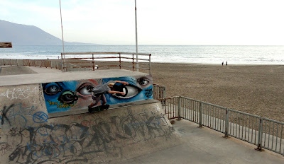 Jimmy and I really made the most of our time in Iquique and it wasn´t hard with a super fun ledgy A frame sitting rite under our noses and a yoga studio next door. The dusty coastal town is set at the base of towering red volcanic mountains that resemble landscapes from Mars. The mountains rise sharply almost 1km straight out of the deep Pacific Ocean. Despite the barren lifeless land, the ocean is teaming with life. Surfing in crystal clear water over a rocky reef we would commonly encounter curios playful seals, penguins and even a whale! The local crew were chilled out and seemed to be happy to share their waves with travelling surfers. When we weren´t riding waves, we were skating one of the biggest skate parks in South America or jovially cooking up feasts with the all Latin crew at the Uma Jaqi Hostel on the beach.