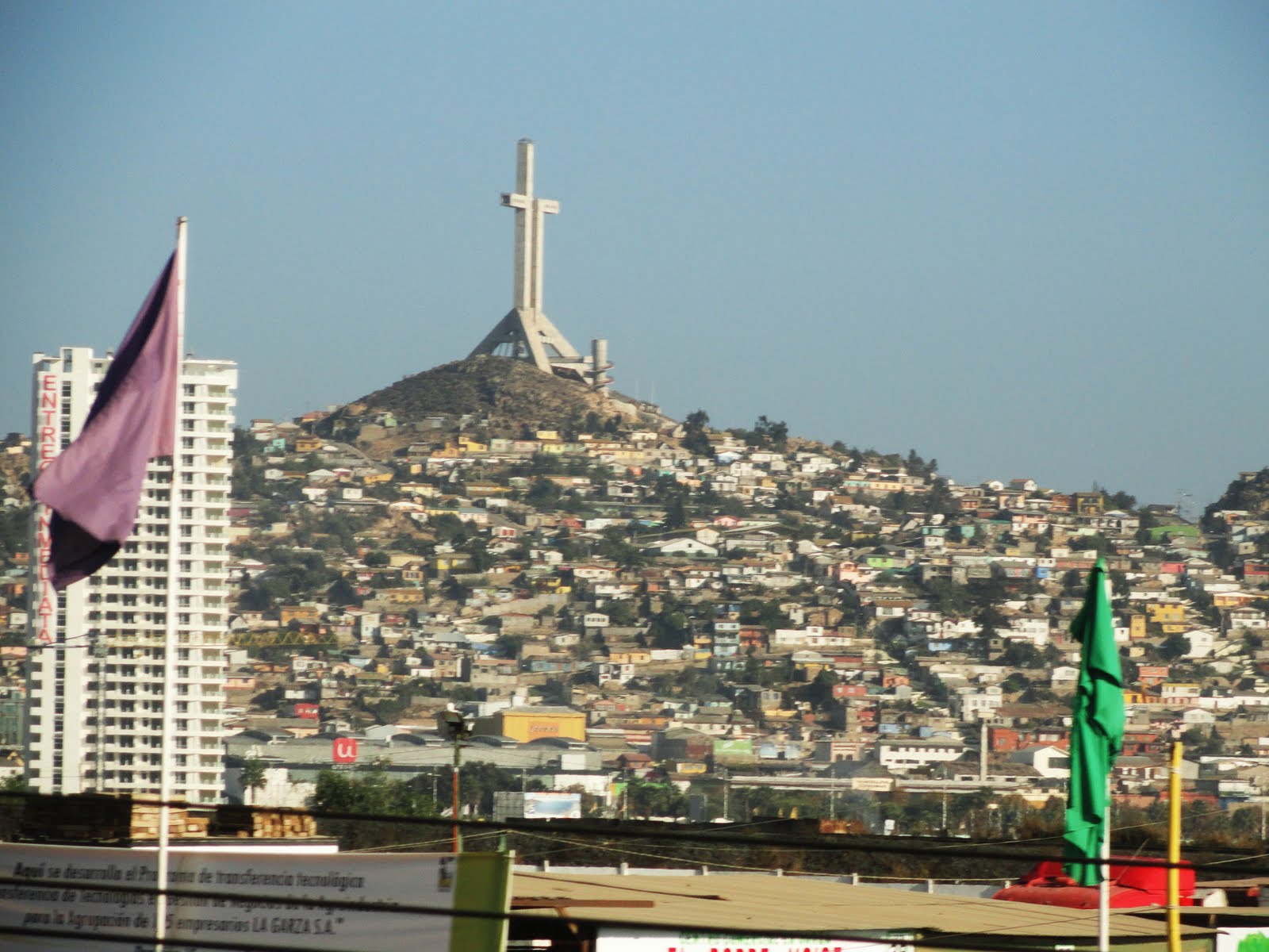 Los Andes, I was given the very front seat of the top deck - a pretty daunting view especially around winding cliffs. I was sitting next to a Chileano grandma and we chatted for hours about each others country and what we loved about BA - great Spanish practice. As we drove through a particular mountain tunnel, she told me the exact point at which the water runs in opposite directions from the peak - was the border of Argentina and Chile. As we approached the border the road became uncomfortably winding and on one particular bend I peered down and saw a burnt out bus upturned halfway down a cliff! At this point I got up and sat down the back for a while...