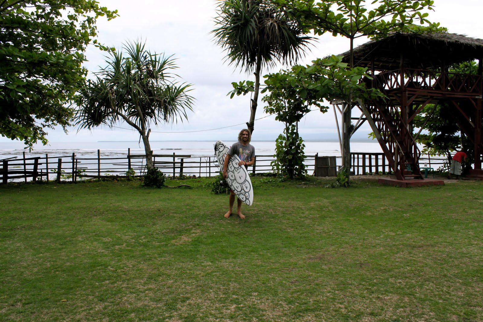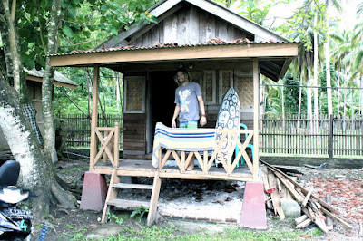 By the time I got to the bus terminal I felt like a zombie and was looking forward to sleeping the 7 hour trip to Krui - but I really shouldn't have got my hopes up... The bus had NO suspension and everytime we hit a big pot hole or wash out - I was thrown into the window bars , rudely awaking me - fortifying my hangover and giving me another egg. The trip dragged on and on until all of a sudden I woke up on my seatmates shoulder looking out through palm trees into a glassy ocean with fun empty waves blessing the shore...The old conductor tapped me and said " Kamu turun di sini mas!" (You get off here mate!)...Paradise...