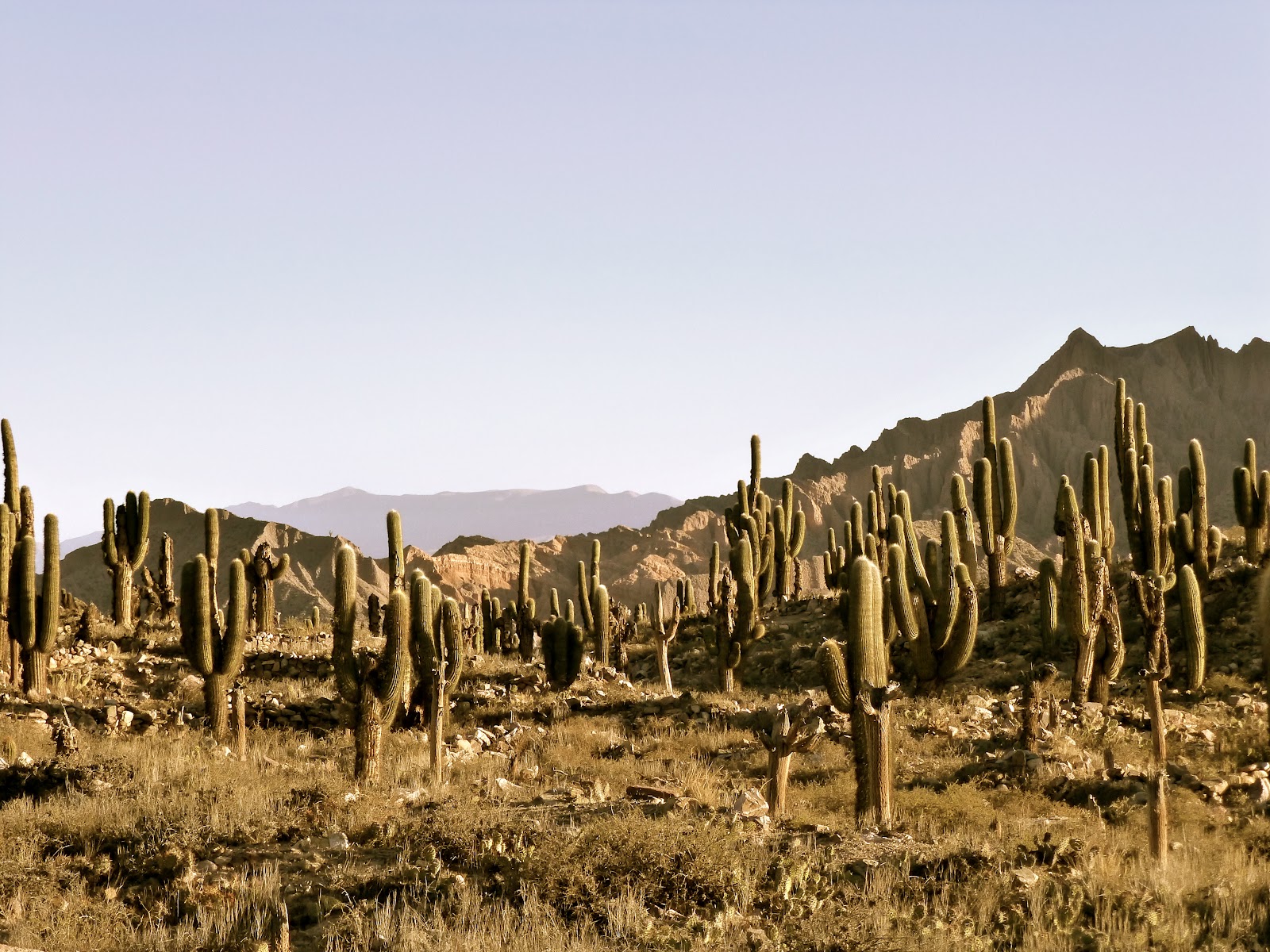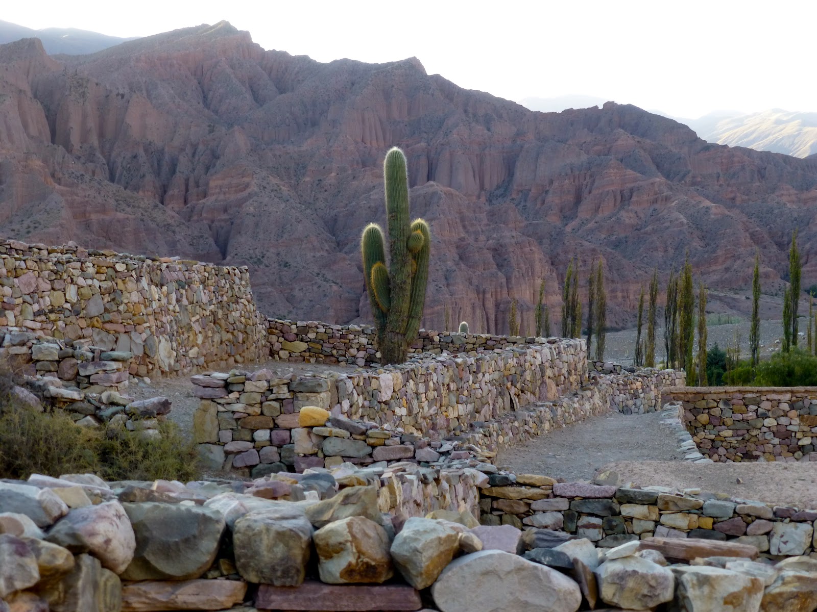 On the big drive up from Cafayate to Tilcara - the scenery changed yet again to cactus covered dusty hills and the altitude left us in need of more cocoa leaves (the raw ingredient of cocaine). We were constantly chewing the stuff which makes your mouth numb though works really well for altitude sickness! The little town was perched on a picturesque hillside and looked more like 1800s Incan village. The people were really warm and the surrounding hills were silent and stunning.